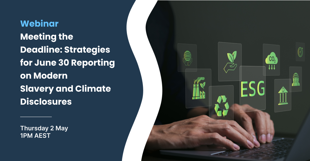 Join Kim Randle, CEO & Co-founder of Fair Supply, in discussion with Julian Fenwick, CEO of GRC Solutions, for an insightful webinar focusing on critical compliance topics for businesses as the June 30 reporting deadline approaches. Kim will guide attendees through the essential end-of-period reporting requirements for the Modern Slavery Act, Australia, detailing the necessary strategies, steps and the importance of accuracy in compliance. Additionally, she will explore the implications of Australiaās new Mandatory Climate-Related Financial Disclosures, outlining what businesses need to know to stay ahead.